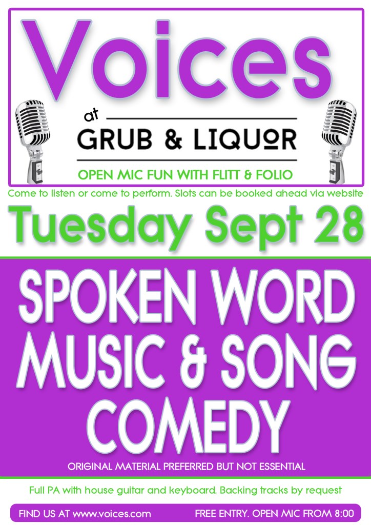 News to follow very soon of two further gatherings at Grub & Liquor in October, but we’ll save those details for our next blog. Suffice to say it’s all really good stuff and you would be daft to miss it. So don’t!