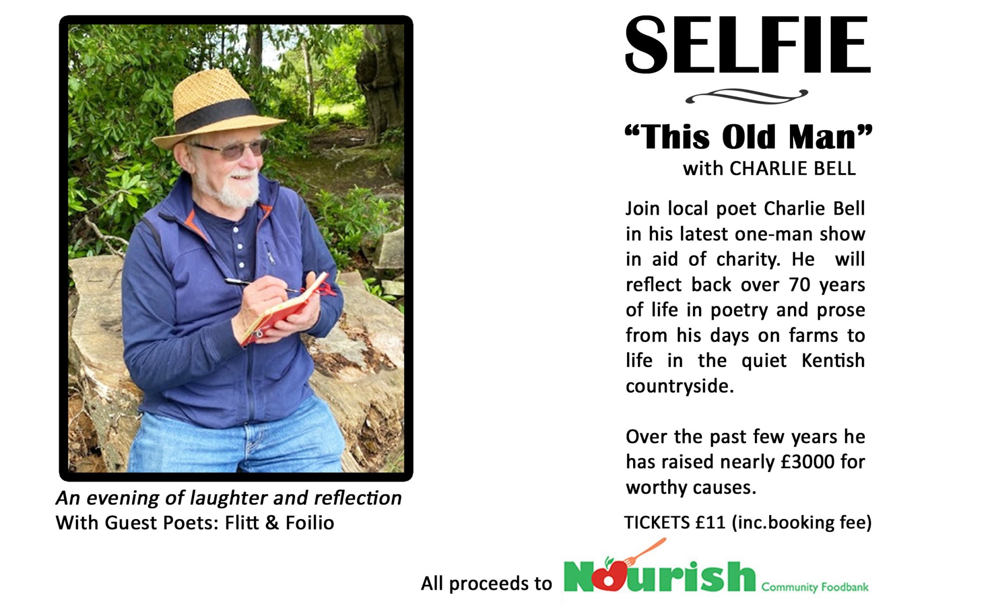 We’ll next be spreading our wings on Saturday night (19th) with our old mucker Charlie Bell, whose “Selfie” in Frant (village hall) will be raising money for Nourish Foodbank. Tickets are available HERE, and all the other info you need can be found on the poster below. We are delighted to be making our own small contribution to the evening and to Nourish, and hope to see you there.